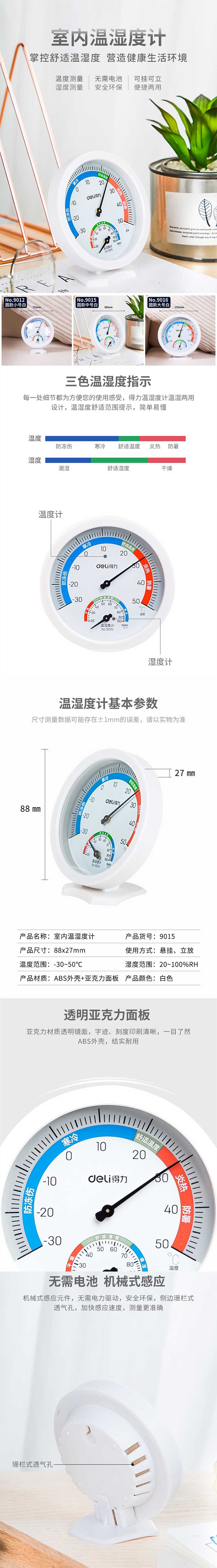 得力9015室内温湿度计(白)