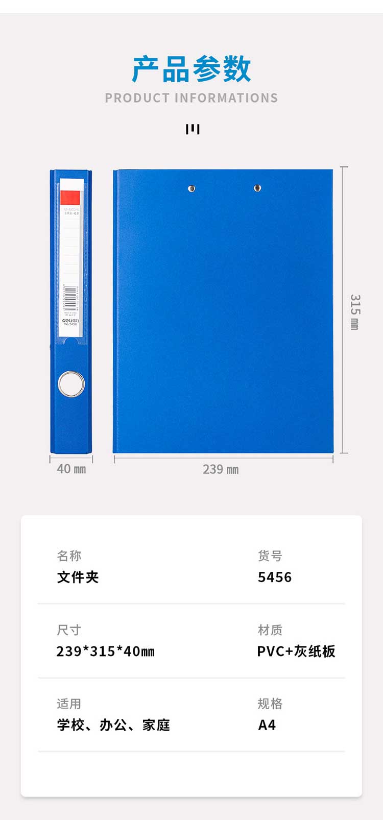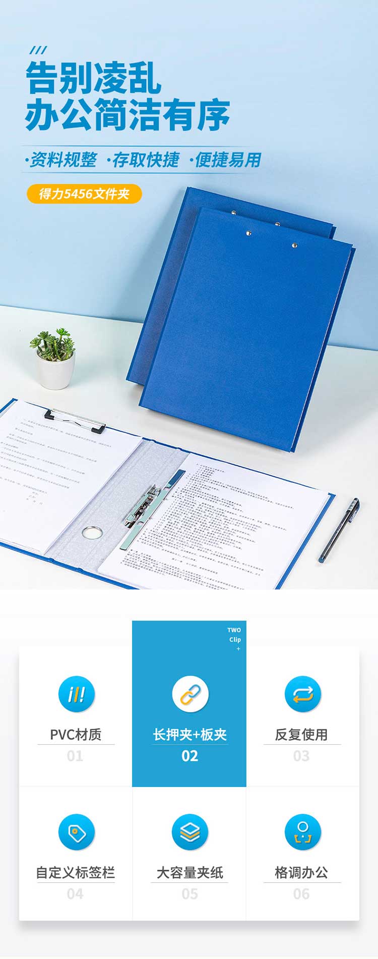5. 得力纸板文件夹5456 (蓝)