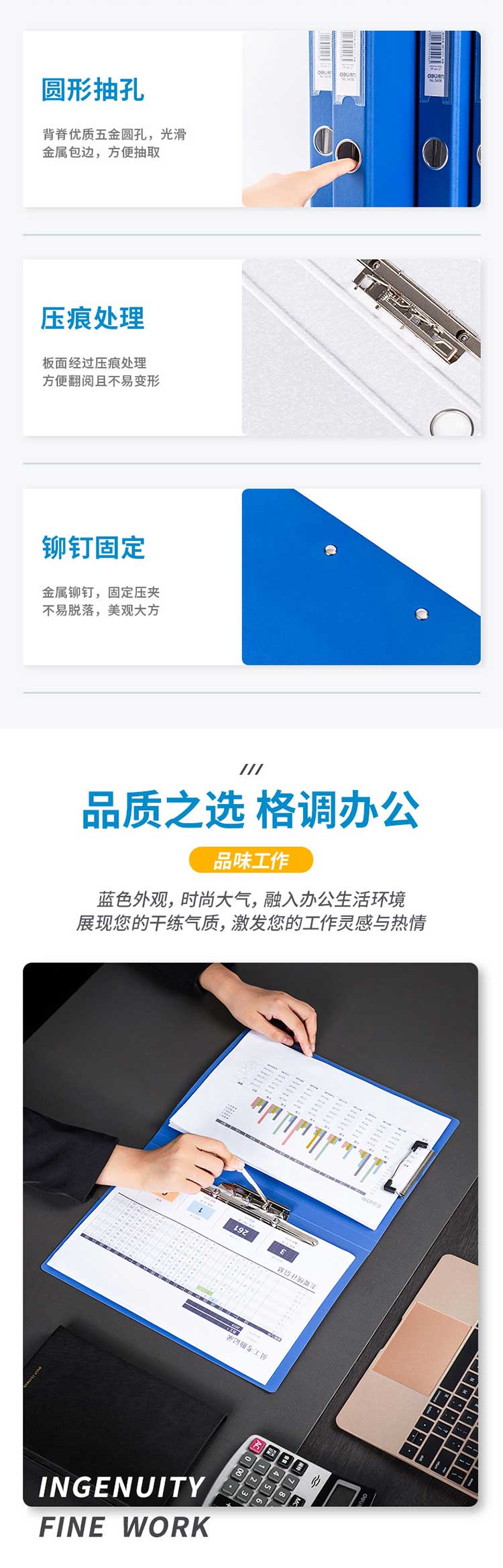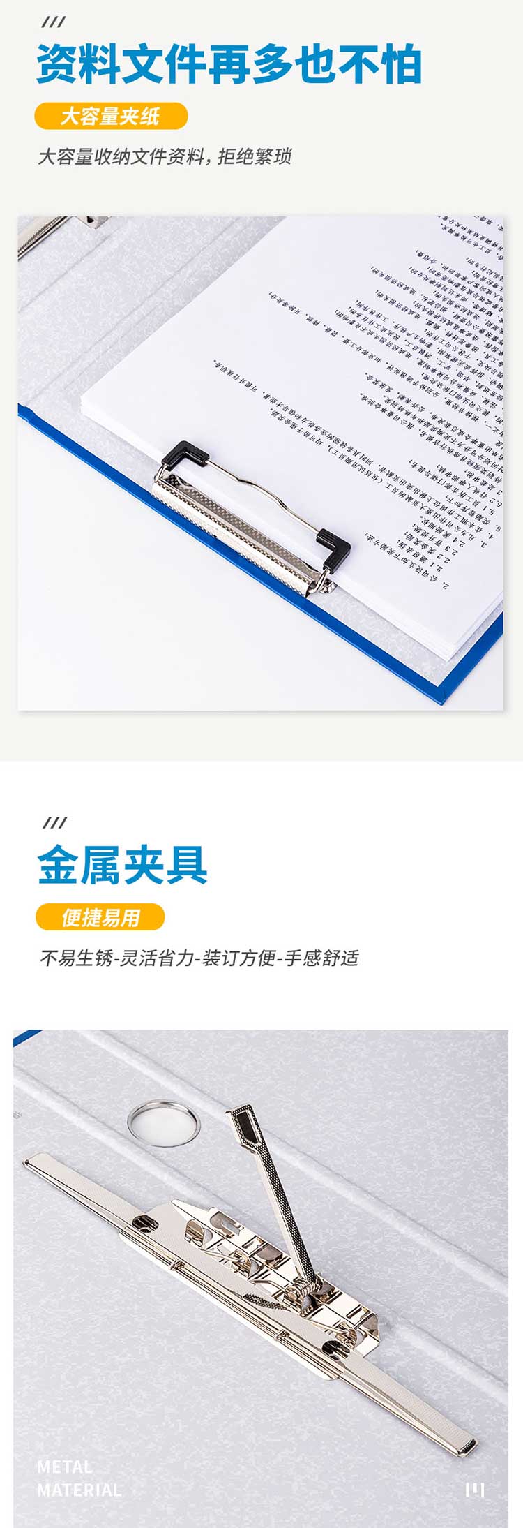 • 齐心NO.336(蓝)纸板夹A4/1.5寸/2孔+板夹