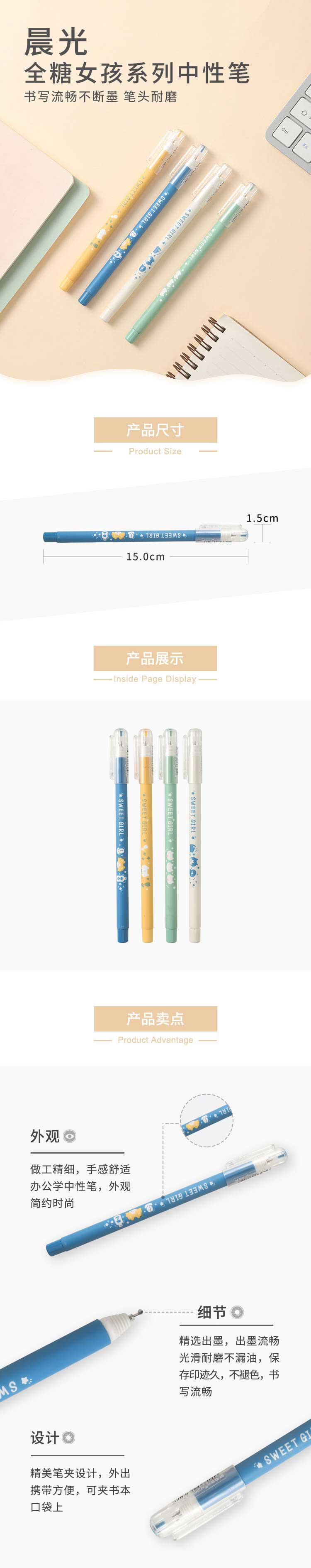 5. 晨光全糖女孩系列中性笔AGPB5305 黑 0.35
