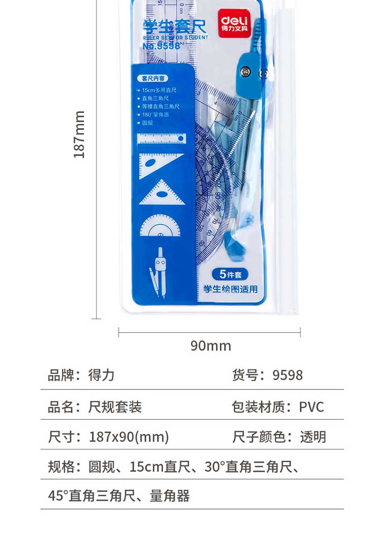 5. 得力学生套尺9598