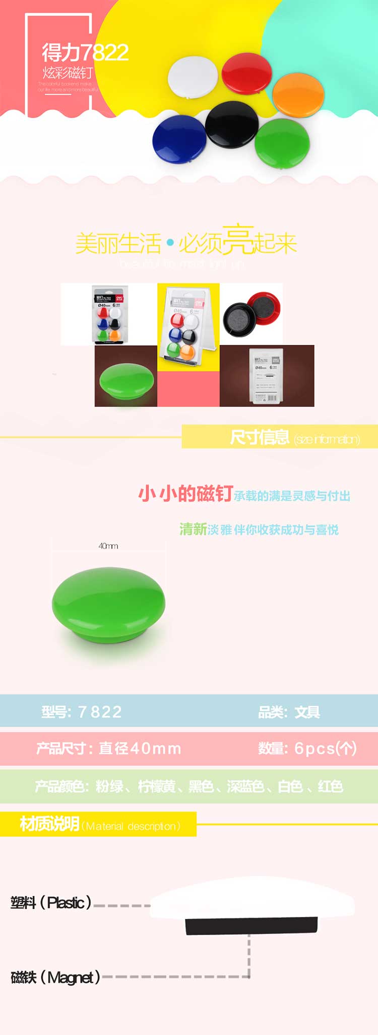 5. 得力磁钉7822 Ф40mm(混)(6个/卡)