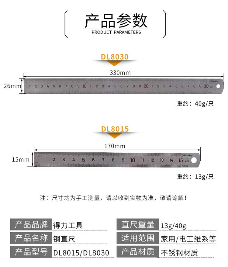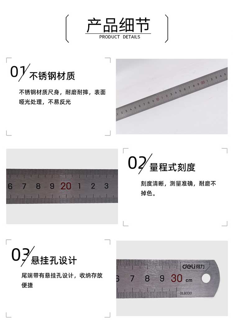 5. 得力钢直尺DL8030 30cm