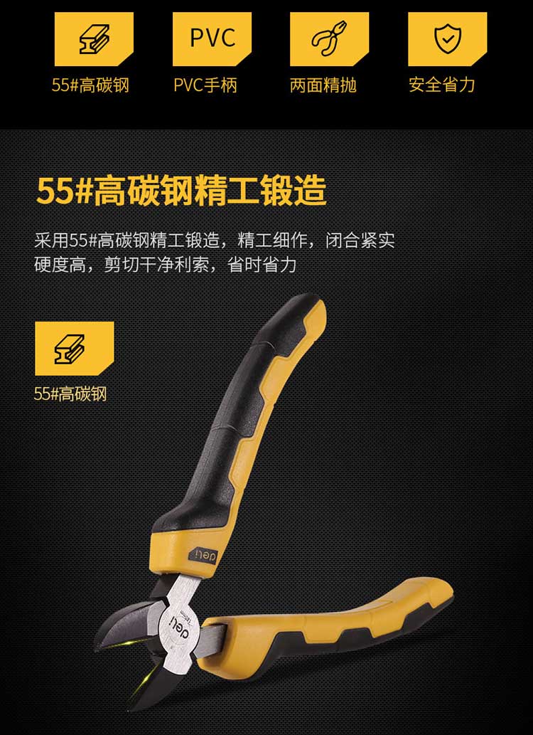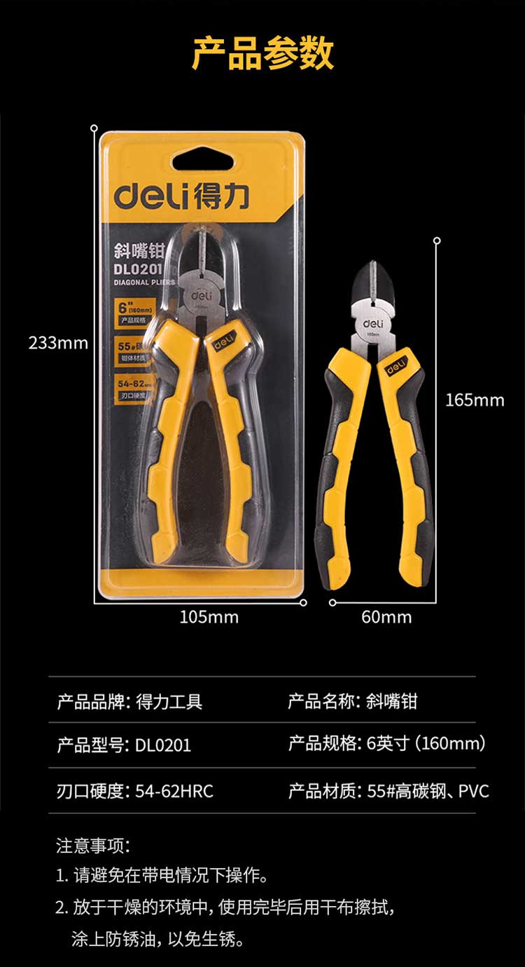 5. 得力钢丝钳DL0201 6寸斜嘴钳