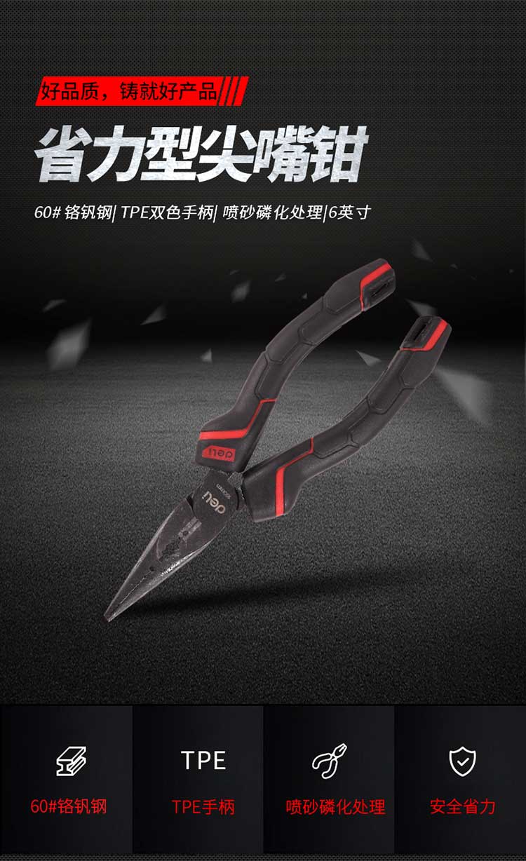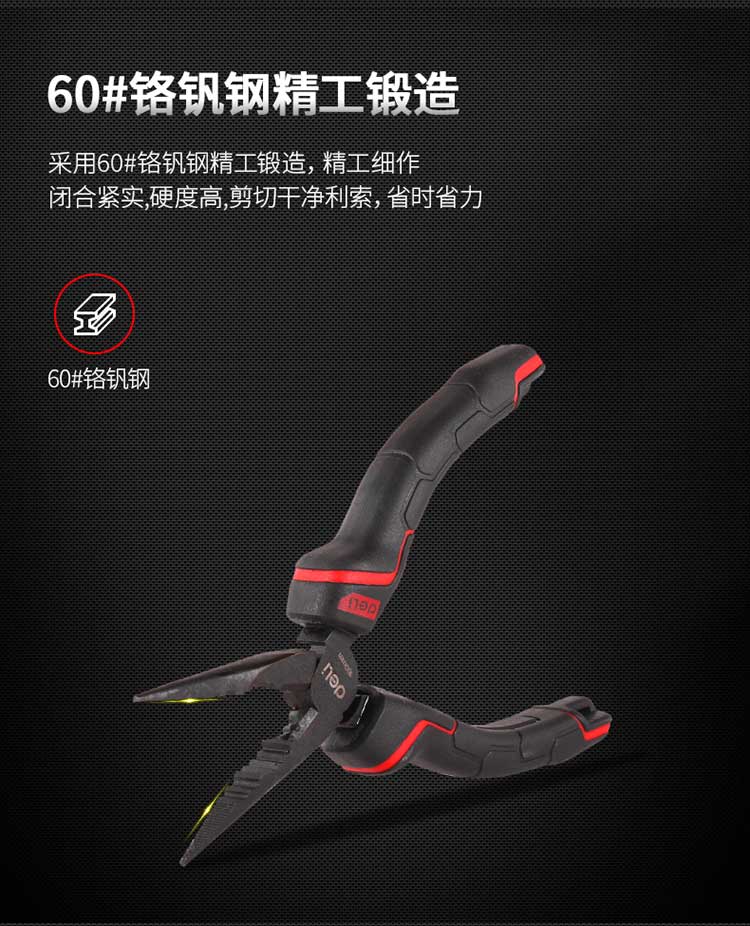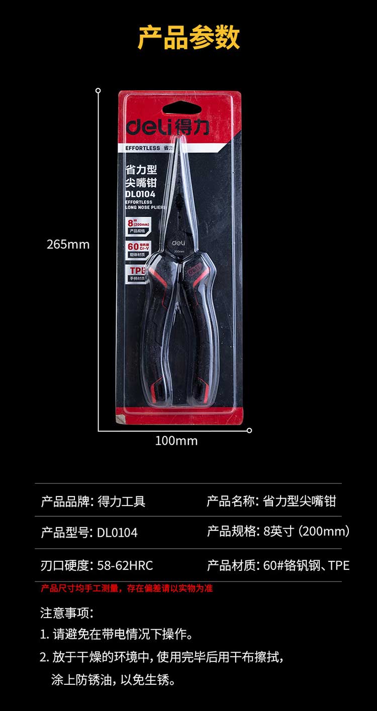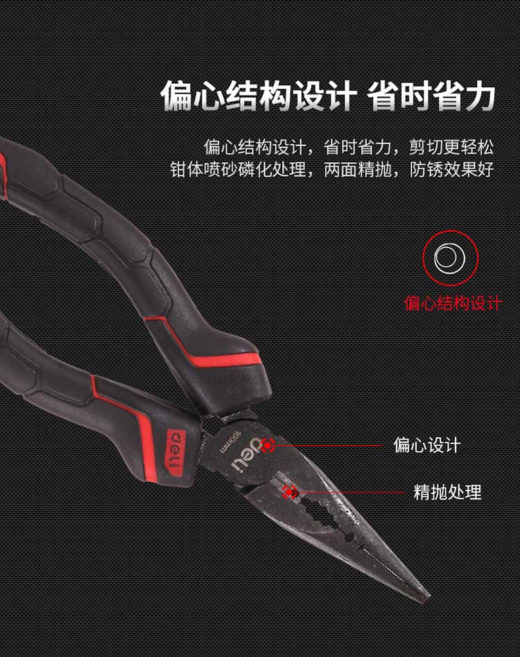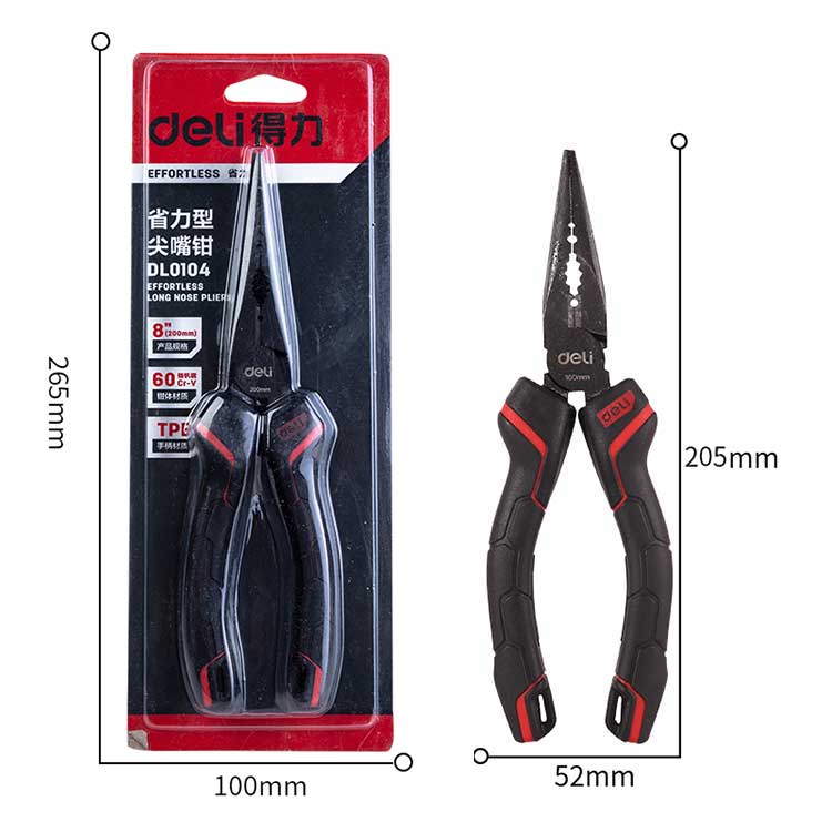 5. 得力钢丝钳DL0104 8寸省力尖嘴钳