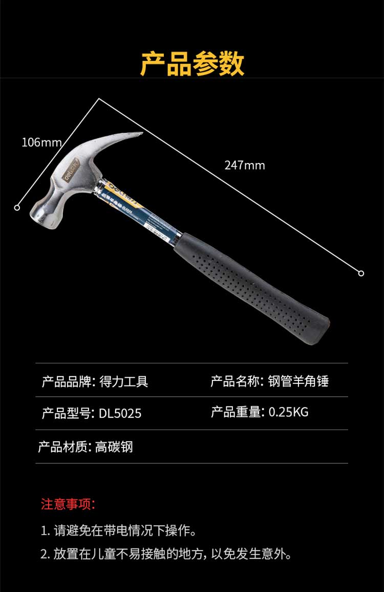 5. 得力羊角锤DL5025 0.25kg