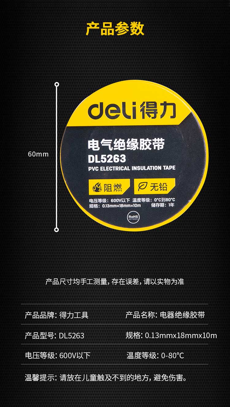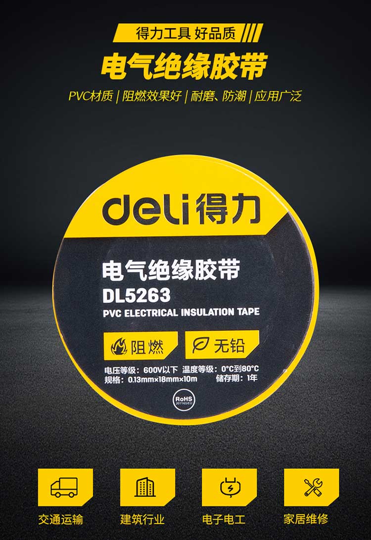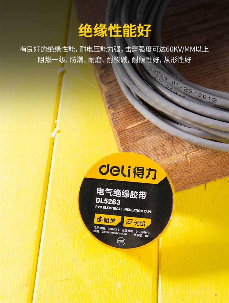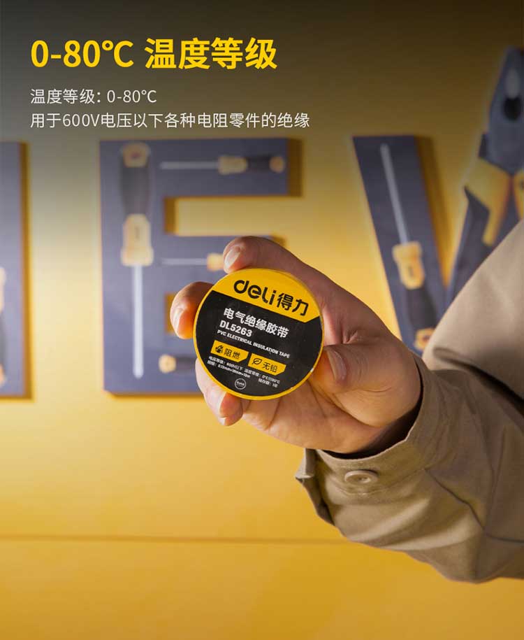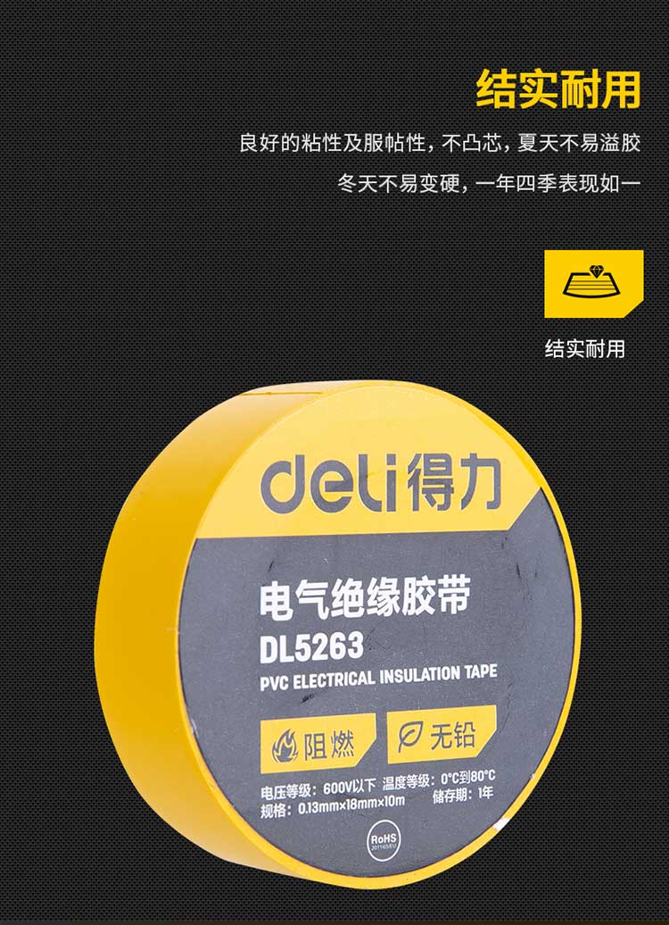 5. 得力绝缘胶布DL5263 黄色