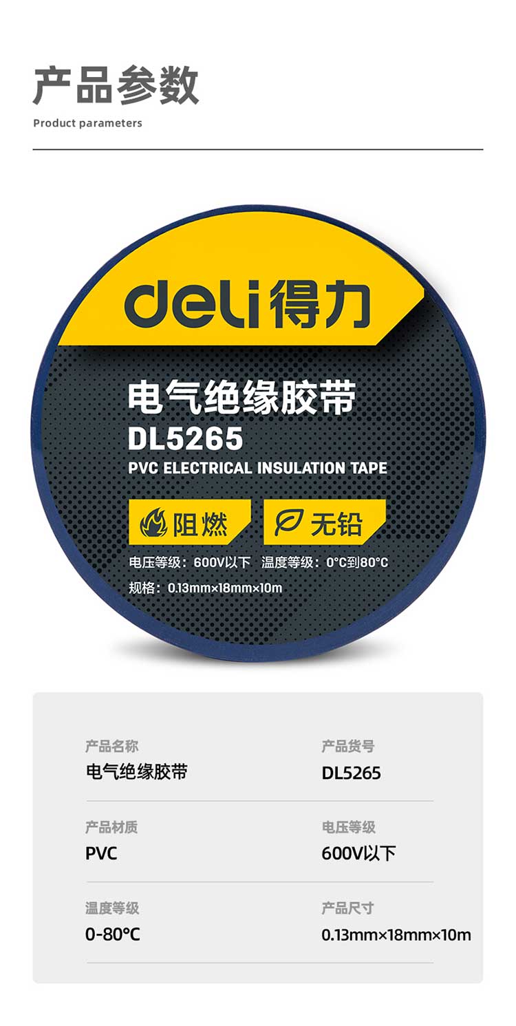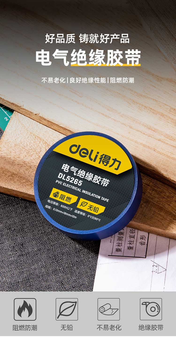 5. 得力绝缘胶布DL5265 蓝色