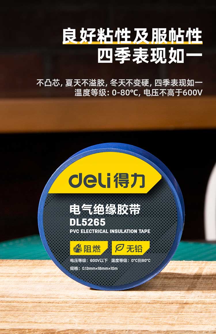 得力绝缘胶布DL5265 蓝色