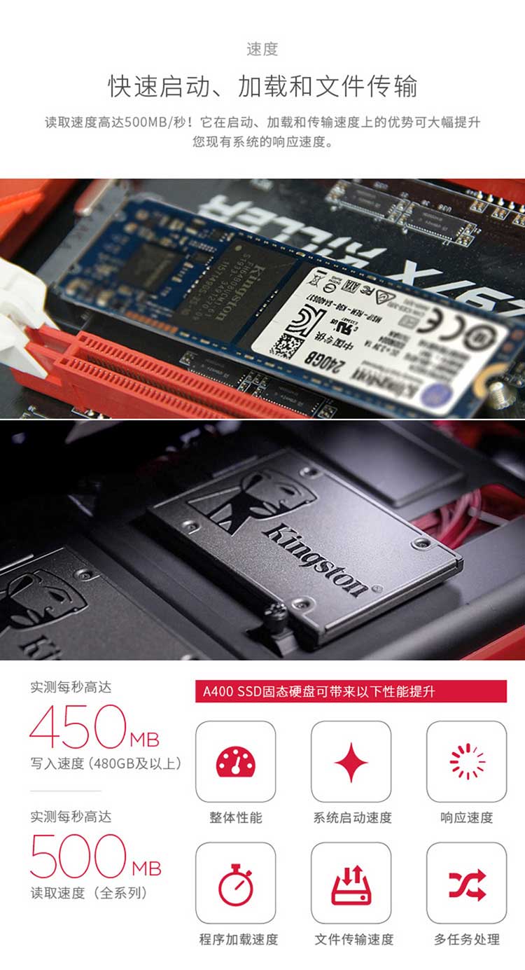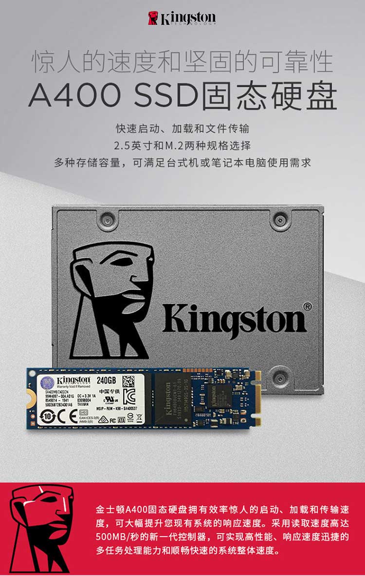金士顿240G SSD固态硬盘 SATA2.5 接口 A400系列