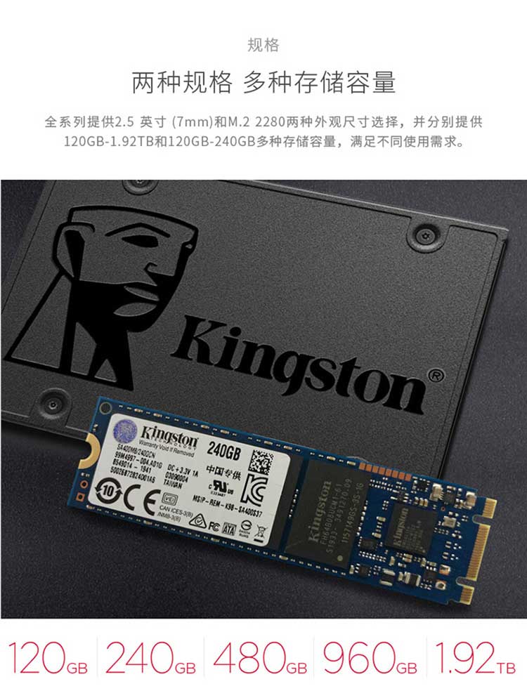 5. 金士顿240G SSD固态硬盘 SATA2.5 接口 A400系列