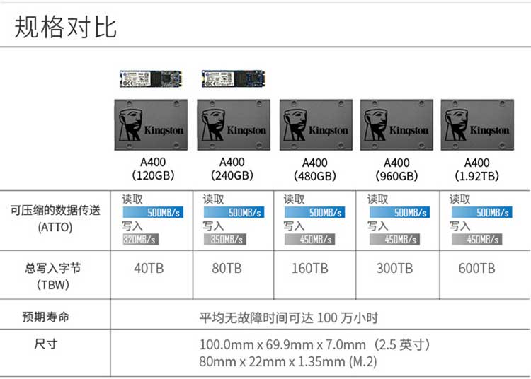 • 金士顿120g SSD固态硬盘 SATA3.0 接口 A400系列:一