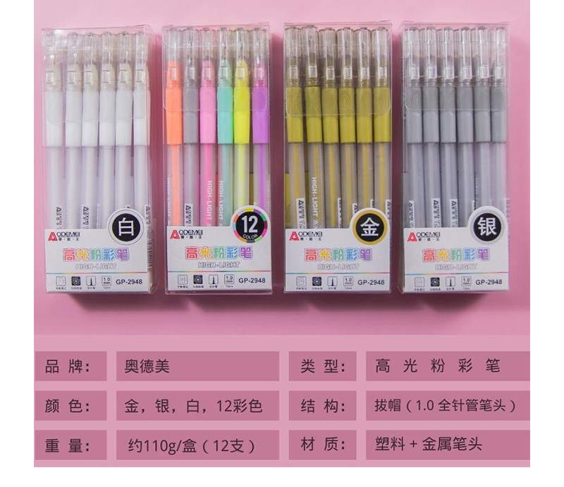 5. 奥德美手账笔高光粉彩笔GP-2948 1.0 12色