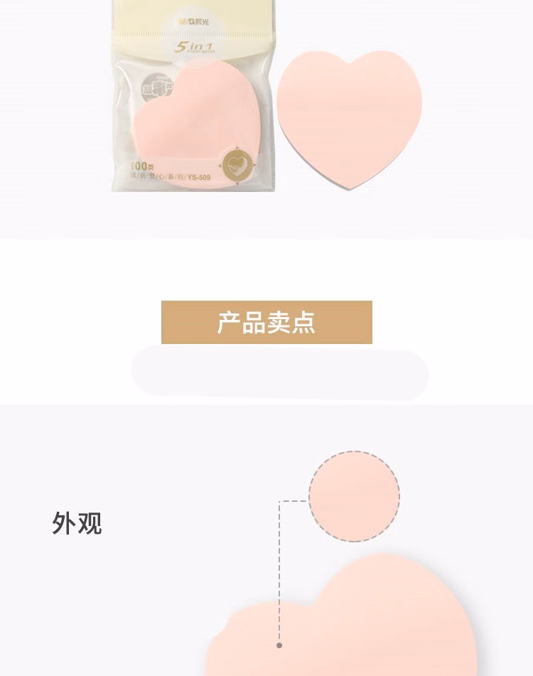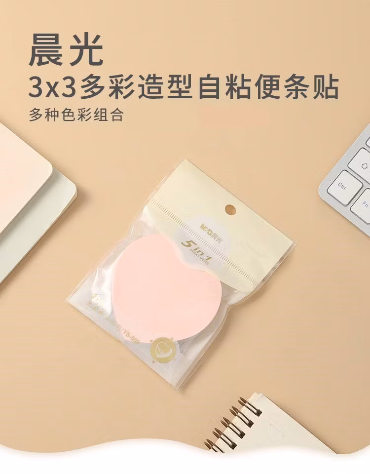 5. 晨光3X3多彩自粘便条纸100(浅素爱心)YS-509
