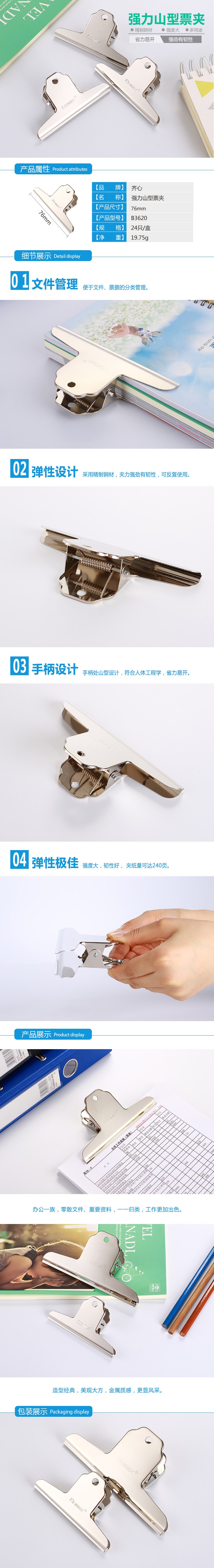 5. 齐心山形票据夹B3620 3#