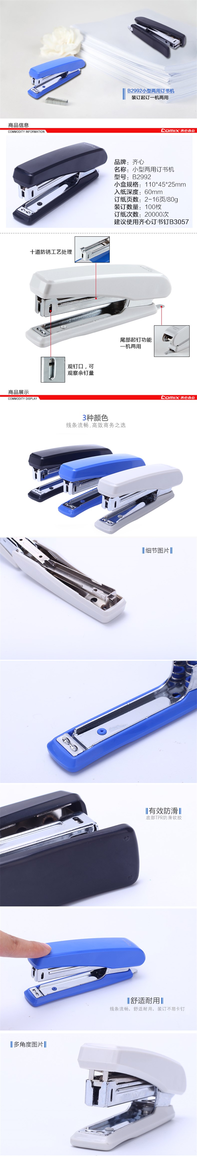 5. 齐心订书机B2992强力耐用