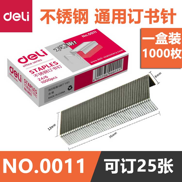 得力不锈钢订书钉0011