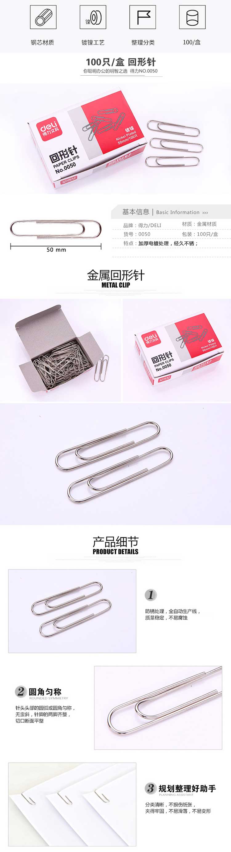 5. 得力回形针0050 8# 50mm
