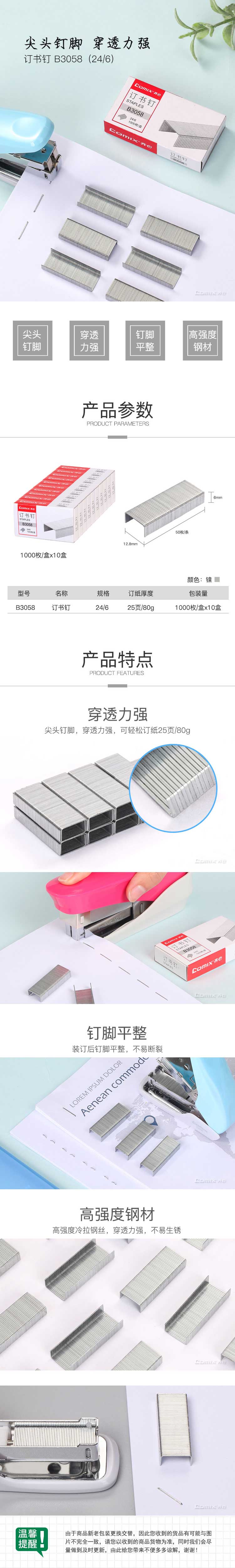5. 齐心B3058订书针24/6统一