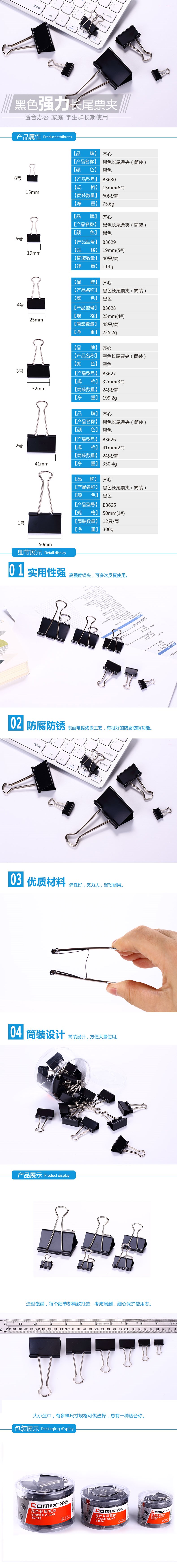 齐心黑色反尾夹B3629 5#