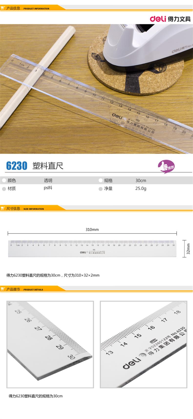 5. 得力直尺30cm NO:6230(透明)