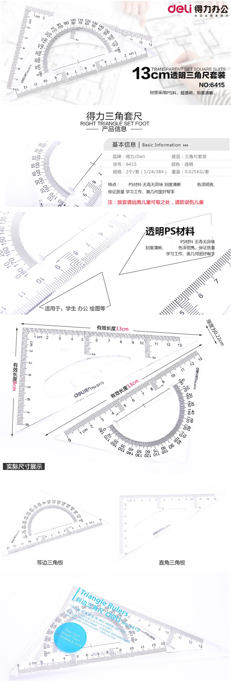 5. 得力三角尺15CM(透明)6415