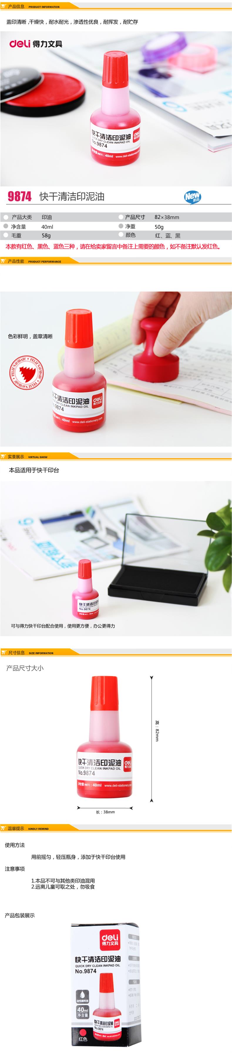 5. 得力印泥油9874红色