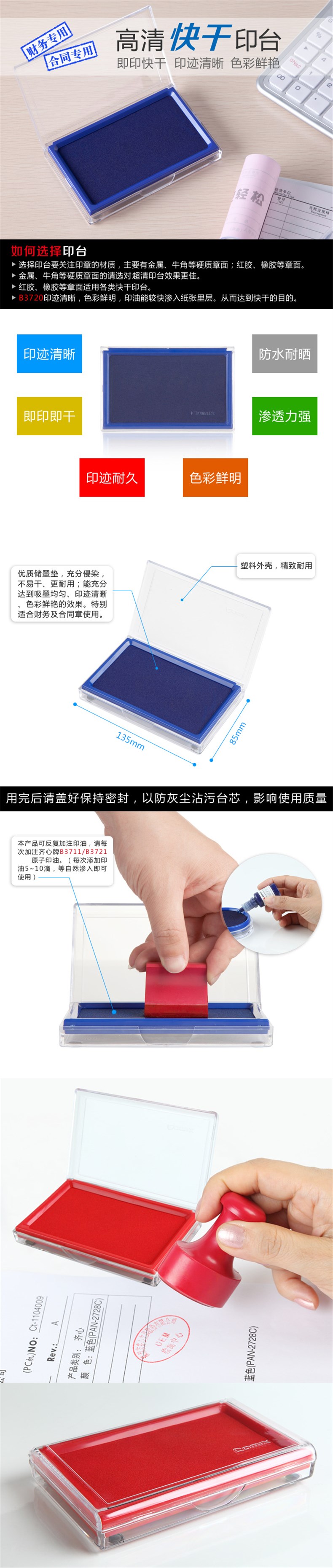 齐心快干印台B3720 红