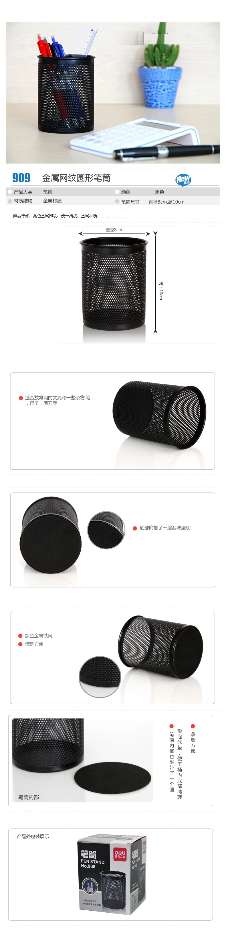 5. 得力908笔筒(黑色)