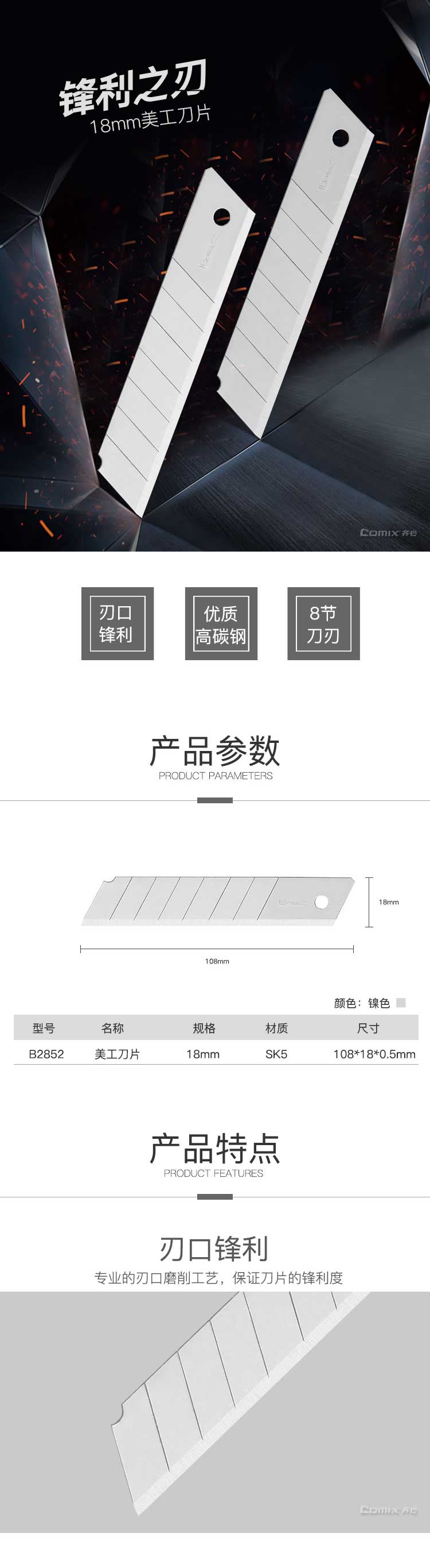 5. 齐心美工刀片B2852