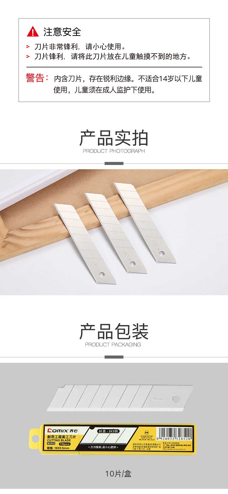 • 齐心美工刀片B2852