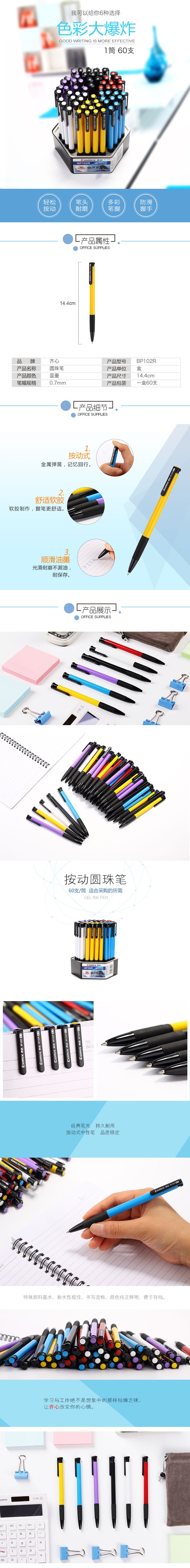 5. 齐心按制圆珠笔BP102R 蓝0.7