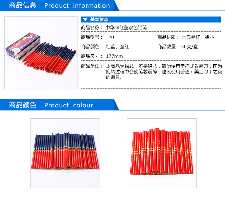 • 中华牌红蓝铅笔120#