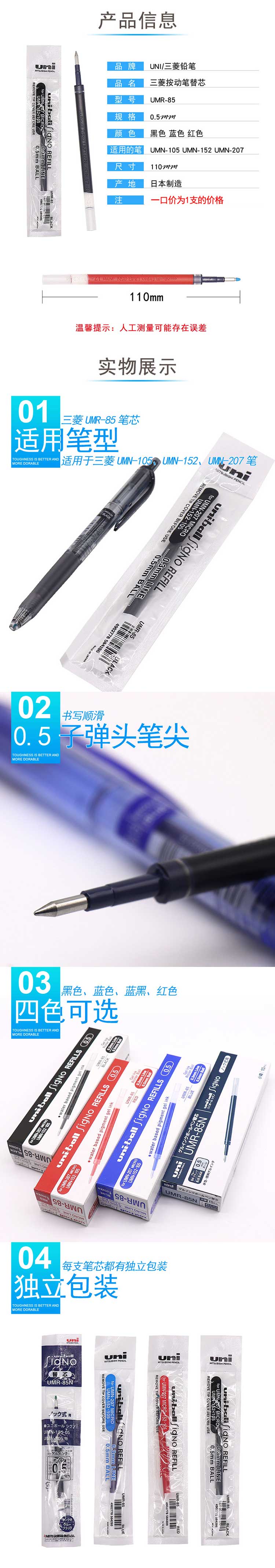 5. 三菱0.5啫喱笔芯 UMR-85黑,配UM-152/105笔