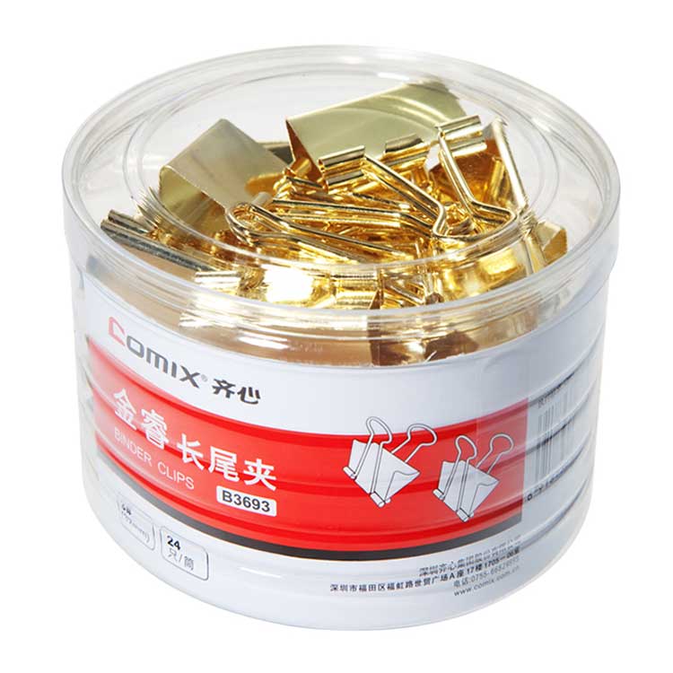 齐心B3693金色长尾票夹 3#